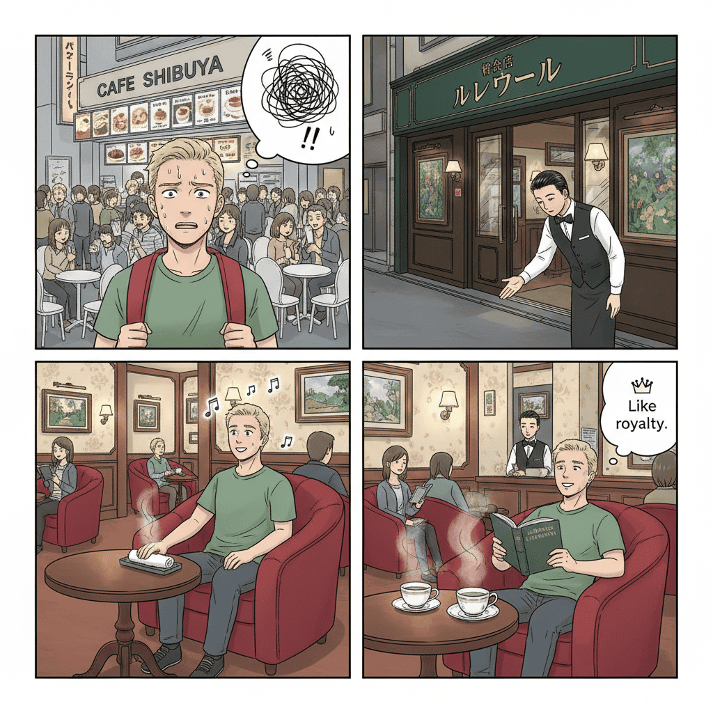 Why did Renoir survive when other old cafes died? In the 90s, the “Fast Coffee” wave (like Doutor) hit Japan. They were cheap and stylish. My family’s coffee shop was one of the many that couldn’t compete and closed down. But Renoir understood one thing: “People need a place to escape.” Tokyo is a stressful, crowded concrete jungle. Sometimes, you don’t need caffeine; you need silence. You need a chair that feels like a sofa. You need a place where no one bothers you. Renoir is not a cafe; it is an “Urban Shelter.”
