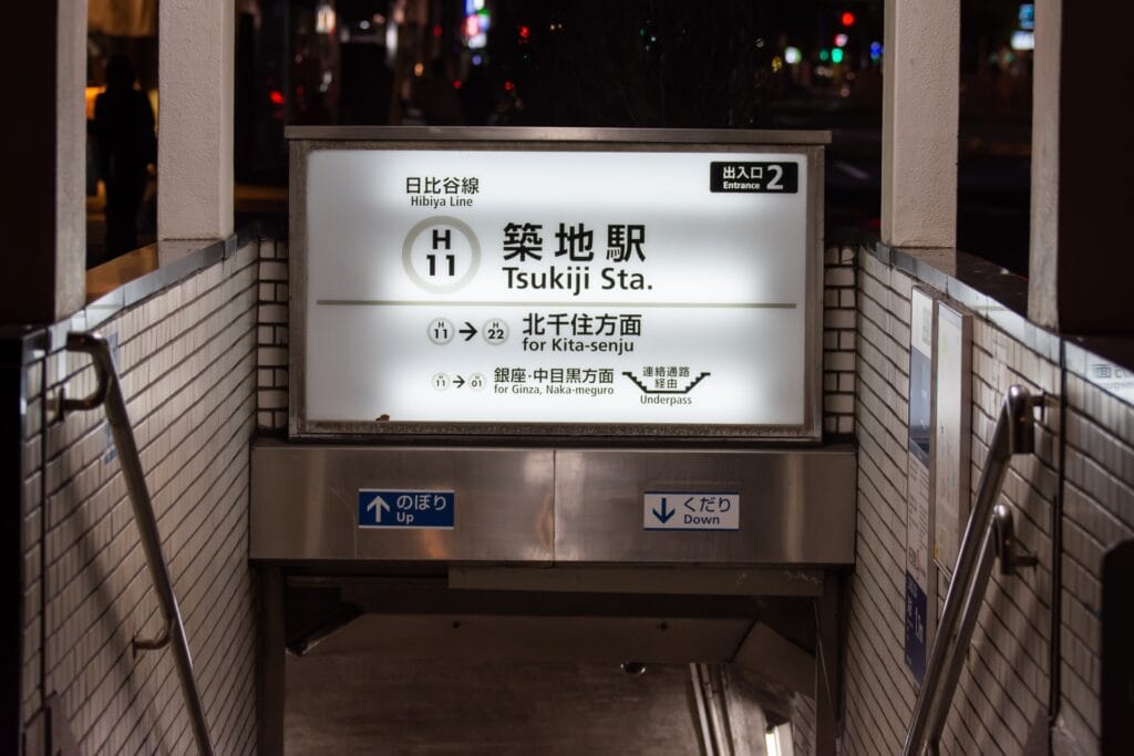 Route: Hibiya Line from Tsukiji Station to Naka-Okachimachi Station.