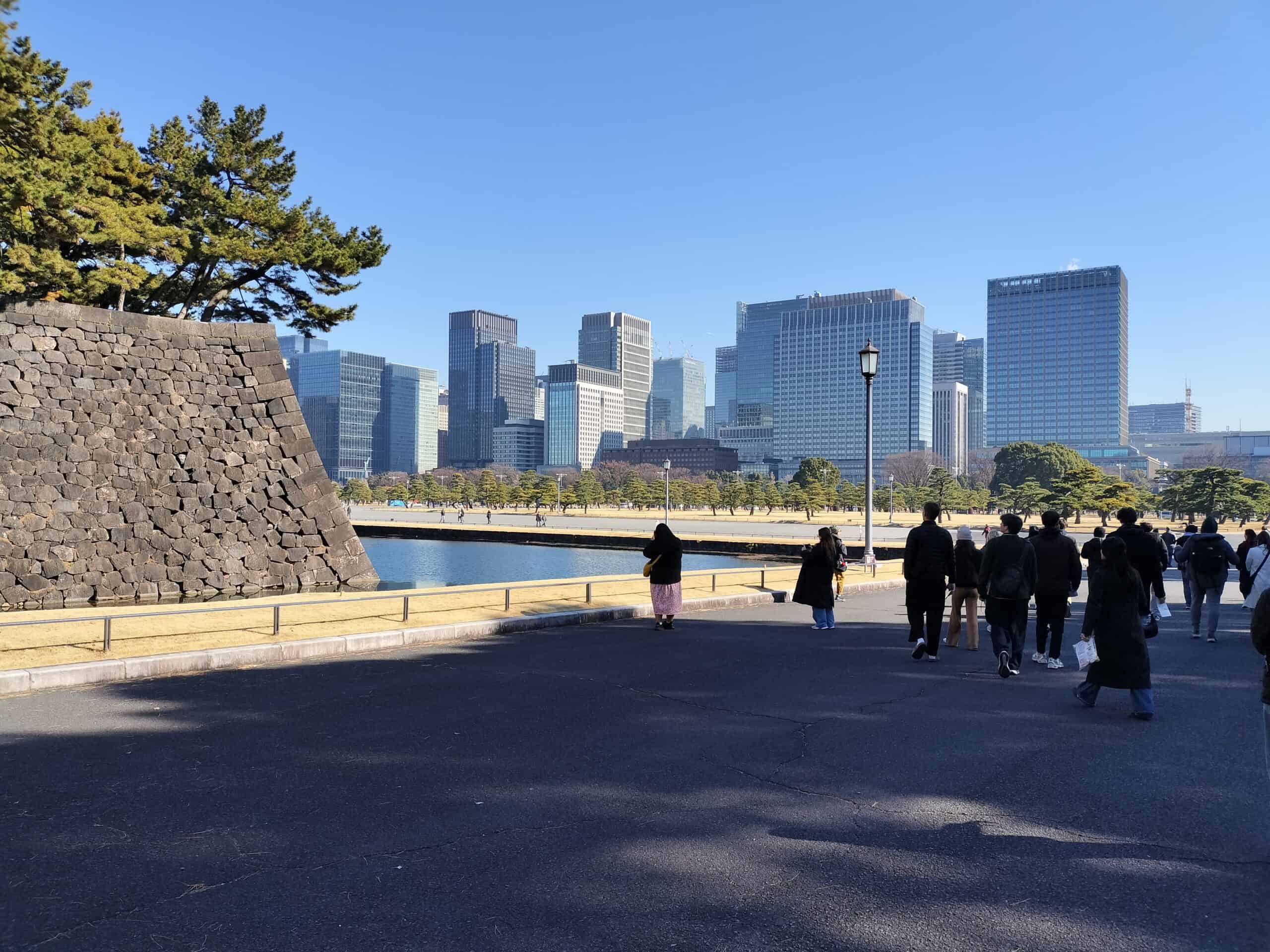• Route: Exit Tokyo Station -> Face the Palace -> Turn right -> Follow the moat counterclockwise -> Head towards Sakurada Gate.