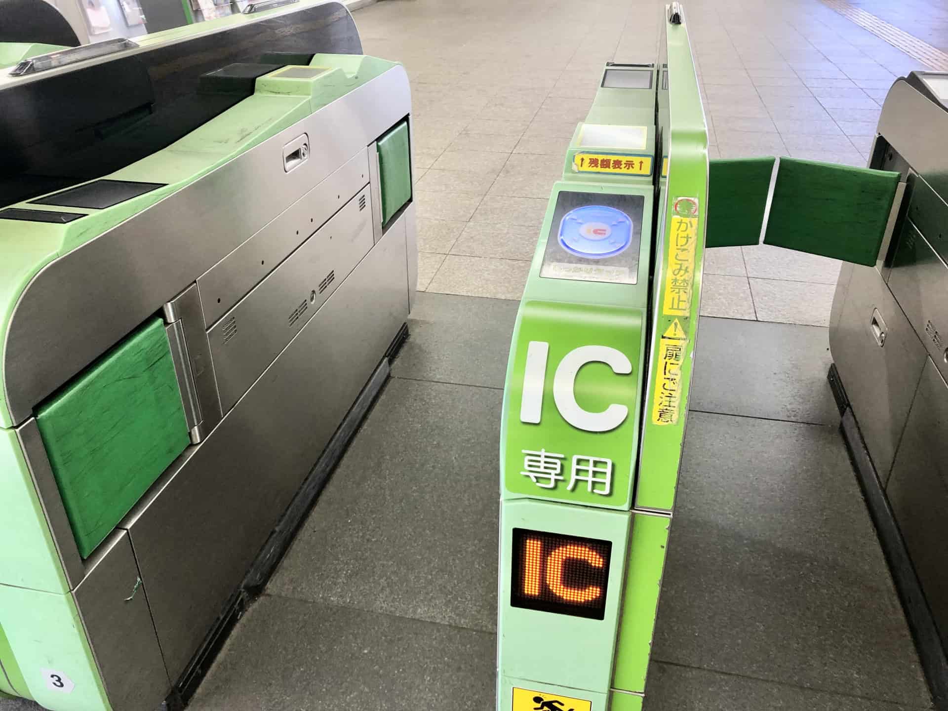 Train ticket gates require one IC card per passenger.