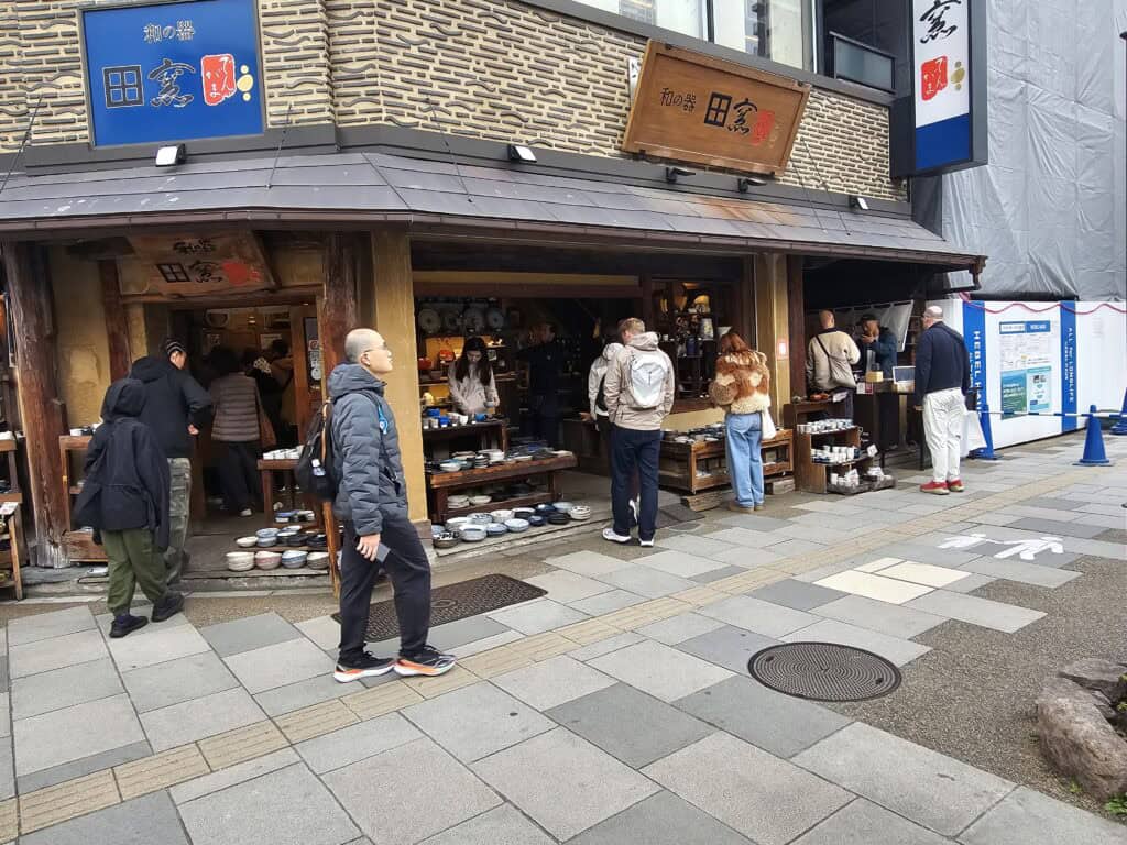The knife shops were especially crowded. In one store, the owner gathered several foreign visitors and demonstrated the sharpness of a knife by slicing meat. When the blade slid cleanly through, a chorus of “Wow” echoed around the shop.