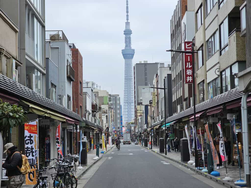 On the way back, look for the side street where you can see Tokyo Skytree in the distance. Walking toward the tower will bring you back to Don Quijote.