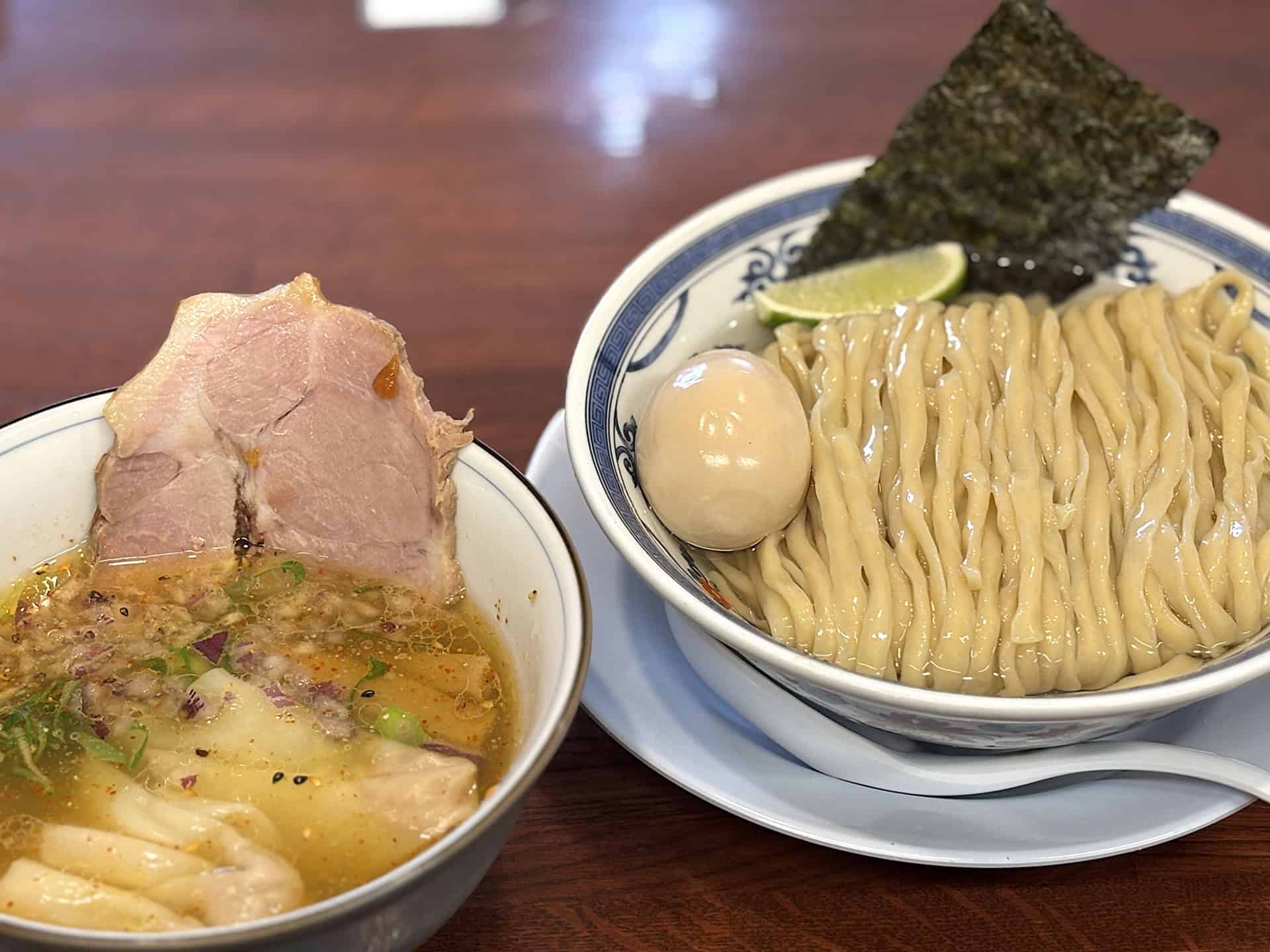 Former sumo wrestler owner operates this tsukemen specialist. Vegetable sweetness and gyokai umami create gentle-flavored soups pairing excellently with chewy medium-thick noodles. Shiroboshi tsukemen ¥1,000.