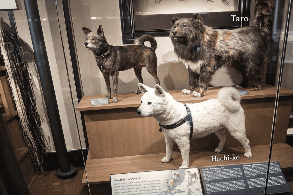 On the second floor, you’ll find Hachiko and Taro displayed side by side.
