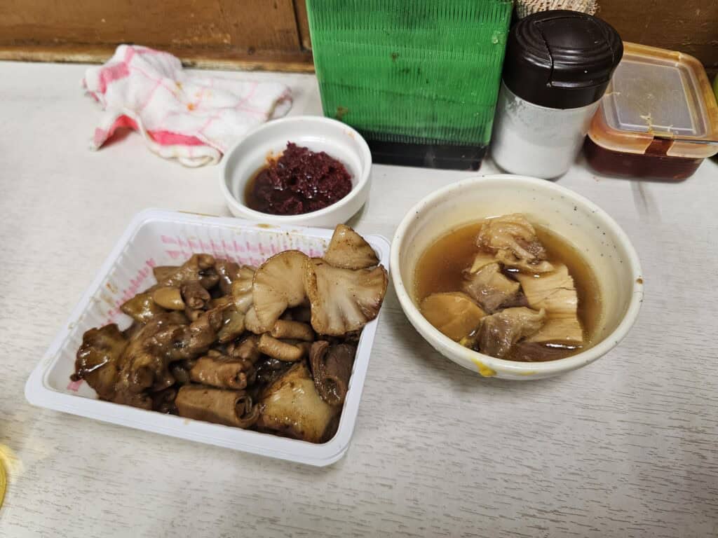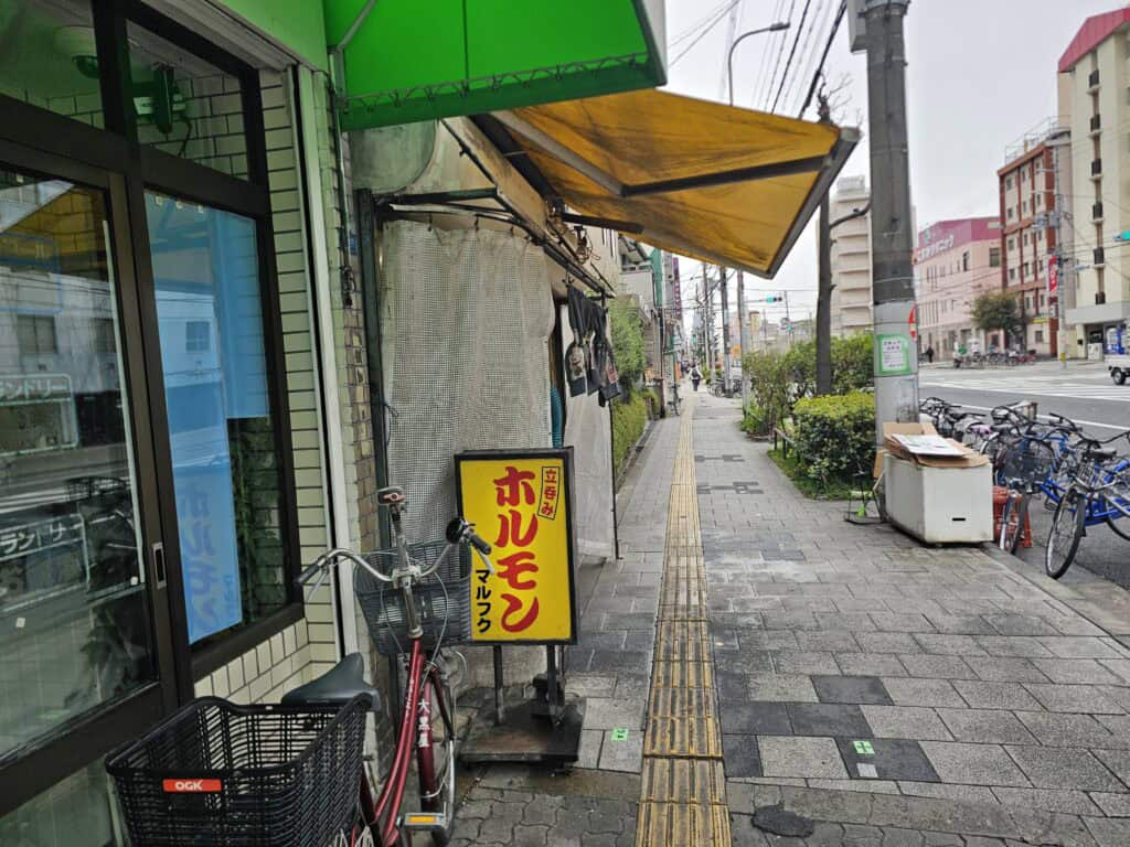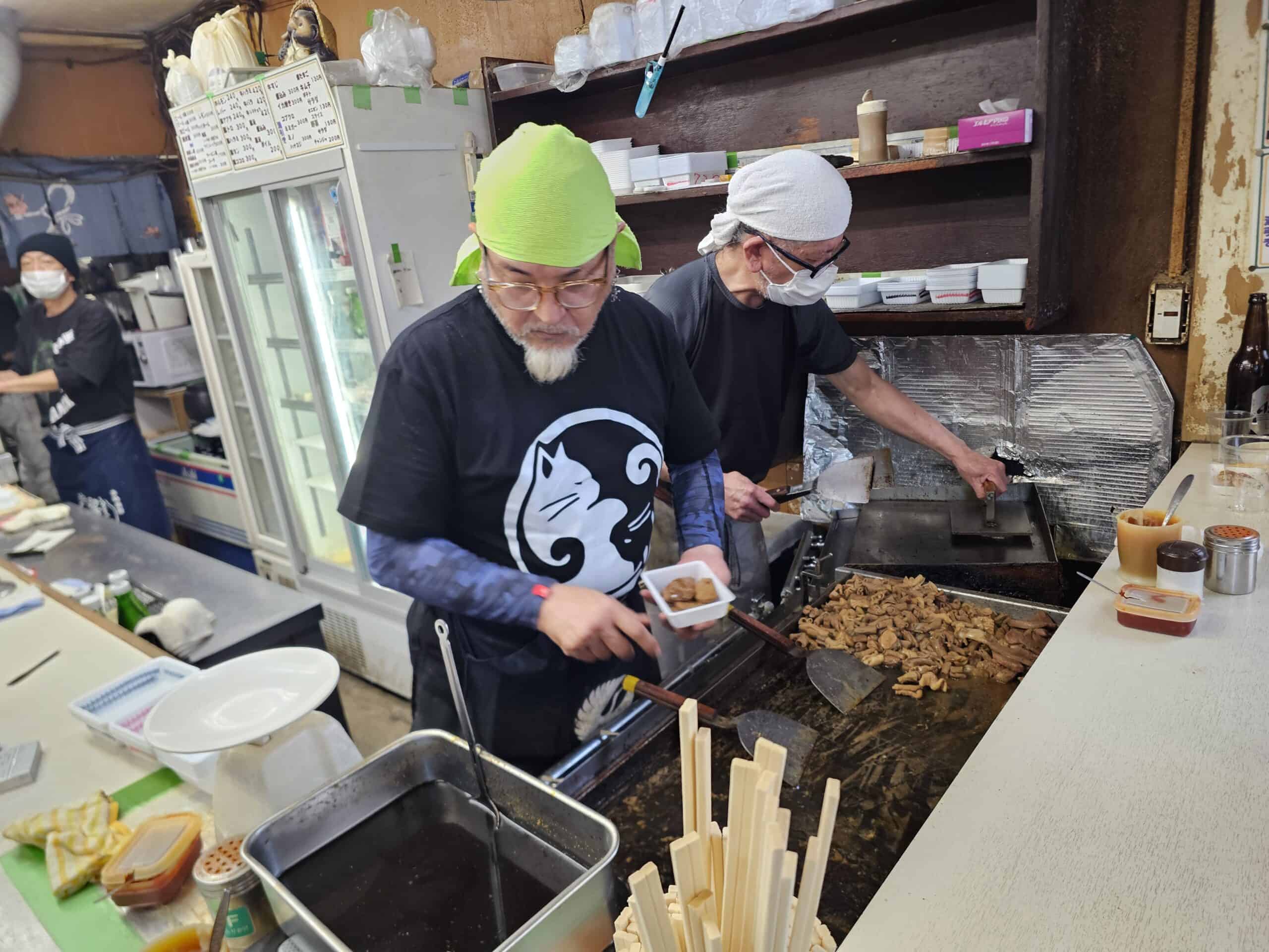 A small standing-style place serving horumon (offal), cooked right in front of you.
