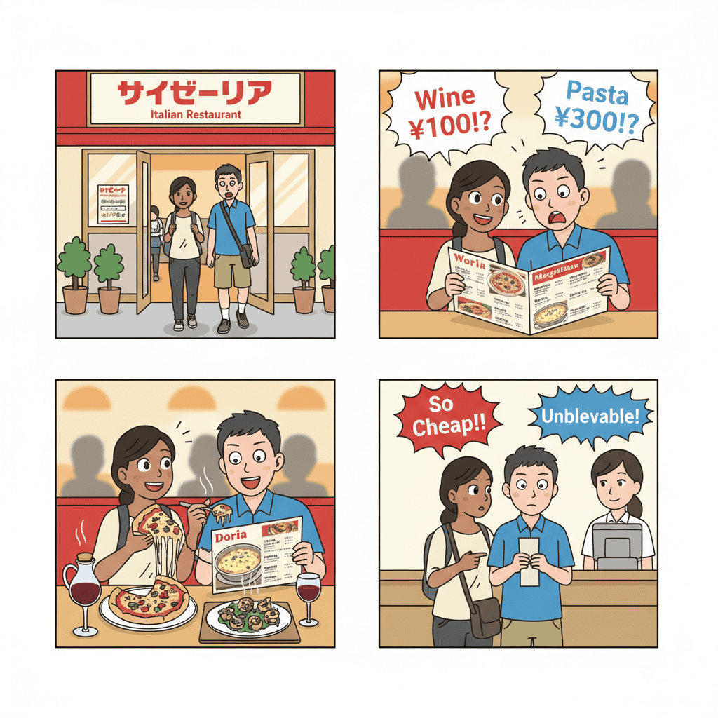 While a Big Mac set at McDonald’s costs around ¥800–¥900, Saizeriya offers a completely different experience for the same price.