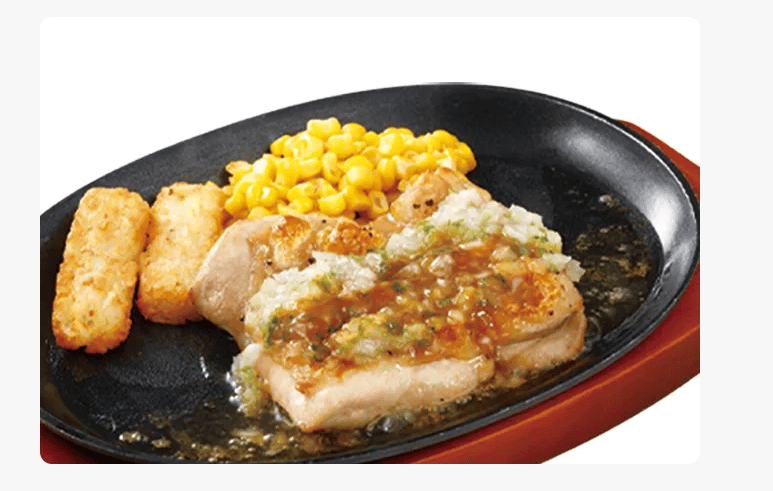 Saizeriya’s most popular meat dish. Thick chicken thigh grilled slowly to juicy perfection, topped with Saizeriya’s signature vegetable sauce.