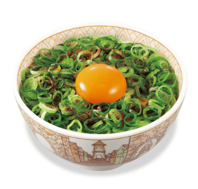 1. Green Onion & Raw Egg Gyudon (Negi-Tama) A mountain of spicy green onions and a raw egg. The texture is amazing. (Calories: Regular 843kcal) [ネギ玉牛丼]