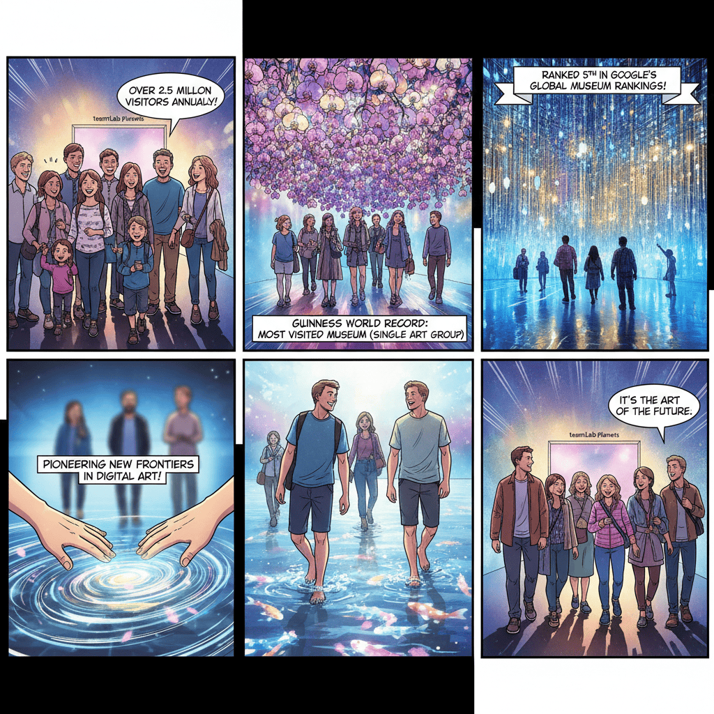 For perspective, the Louvre—the world’s most famous comprehensive art museum—welcomed 7.8 million visitors in 2022. teamLab Planets’ annual attendance of 2.5 million is truly phenomenal for a specialized art venue.