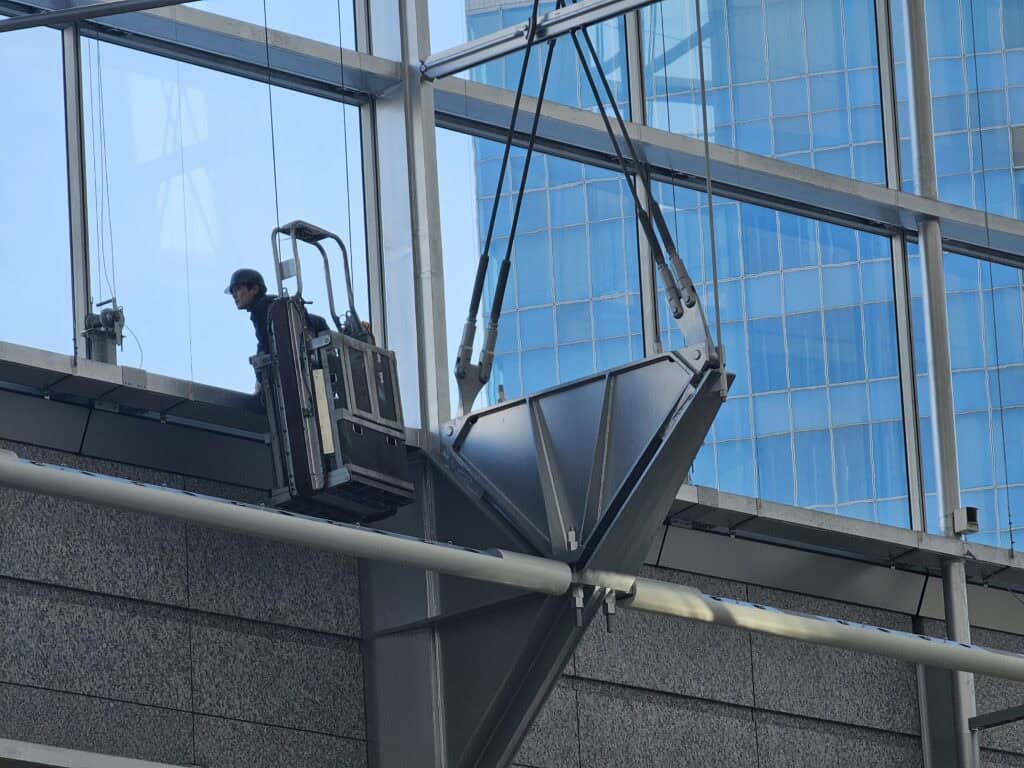 📷 PHOTO — worker cleaning one of the glass panels