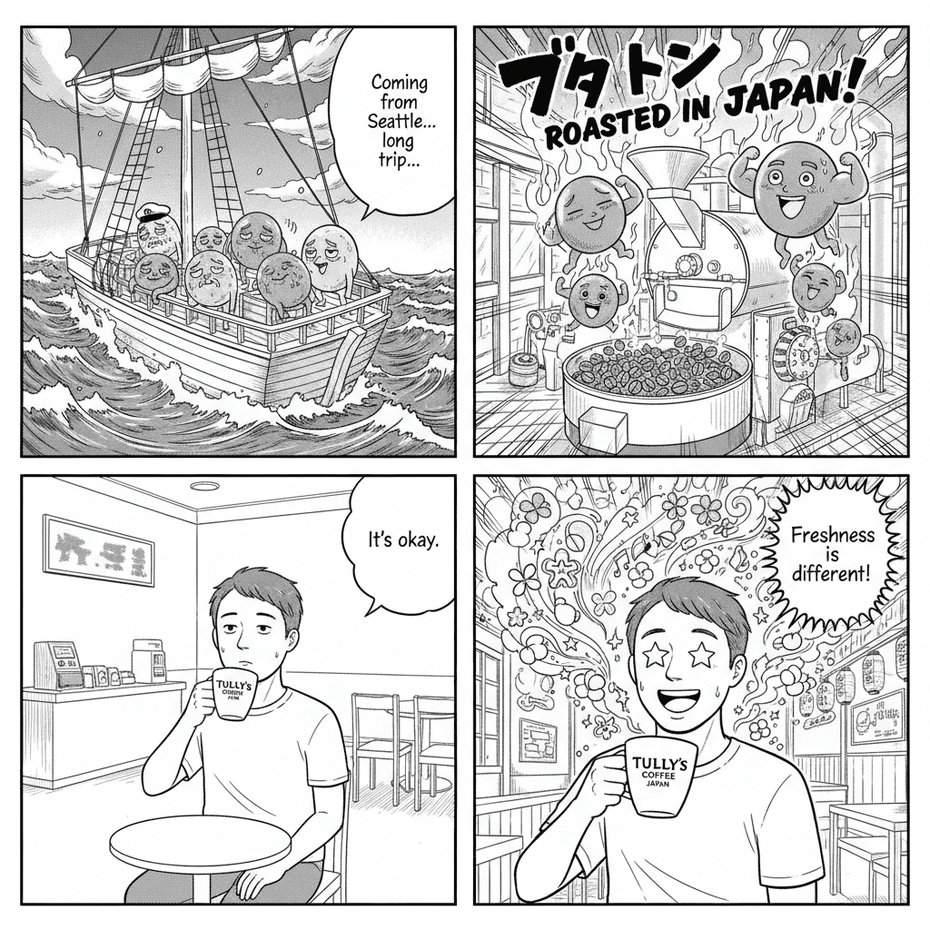 Tully’s made a bold decision in 2001: To roast all beans domestically in Japan. Many global coffee chains roast their beans in massive overseas plants (like in Seattle) and ship them worldwide. This takes time. Tully’s Japan believes that coffee is like fresh food—it tastes best within a month of roasting. By roasting in Japan, they minimize the time between the roaster and your cup. They even have a project in Peru to save the “Typica” bean (an ancestral coffee species) by grafting it onto stronger roots. They are serious about beans.