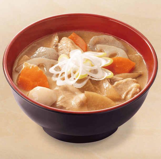 Pork and vegetable soup seasoned with miso—a hearty variant of miso soup. Set meals include miso soup, but you can upgrade to tonjiru for a small additional charge.